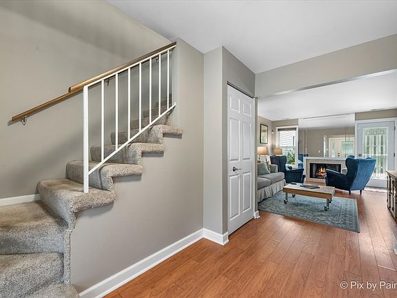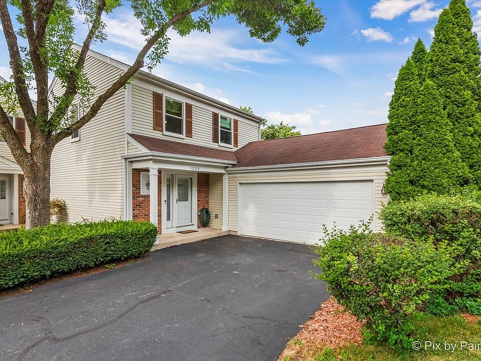 Walk or bike to downtown Naperville! Completely upgraded from top to bottom this GORGEOUS duplex has it all! Step into the lovely foyer through a newer front door with side window and inset leaded glass accents, and notice the newer floors, designer paint and fixtures throughout the entire home. The family room is the center of this home with great space and features a gas-burning fireplace and a french door to the outside deck. The kitchen has been completely upgraded with SS appliances including white custom cabinets, granite tops, custom tile backsplash, a portable island and a sliding glass door to the outside. The formal dining room features a large bay window overlooking the lush backyard and is the perfect place for your next gathering. Upstairs you will find two generous bedrooms plus a large loft that can be a great home office or potentially a 3rd bedroom. Both bathrooms have been beautifully updated including flooring, hardware and tile work. Plus, the primary bedroom has dual closets. There is an oversized garage that fits 2 cars plus loads of storage, a motorcycle and/or a work shop area. The outside is so peaceful and completely private with mature trees & perennials and backs to common green space. Low HOA fee only $32 per month.