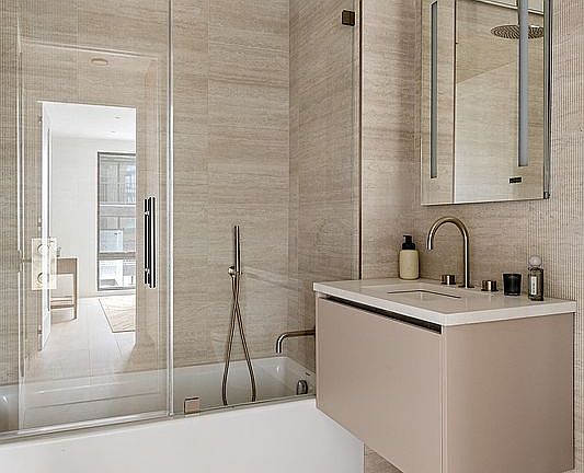 Refined, spacious, and quietly sophisticated, Residence 3B at The Pacific is a split-layout two bedroom with a 119 SF private balcony. The home is an open living and dining area finished with 9.5” wide-plank white oak floors and a huge glass wall with sliders opening to the large balcony.