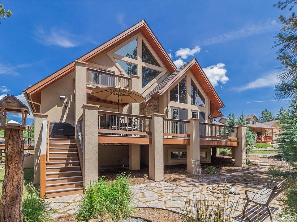 Exclusive former Parade Home with multiple premium features. Located on .65-acre lot on quiet cul-de-sac in prestigious neighborhood. New roof coming soon! Stunning Great Room with rock wall fireplace, amazing wall-of-windows, tongue-n-groove open beam cathedral ceilings and rich red oak floors that open to the Kitchen and Dining Area. Pause to admire the expansive ceilings and open Loft area with private balcony. Efficient, modern Kitchen is ready for entertaining - featuring a large island with granite countertops, hickory cabinetry, breakfast bar, and central vac. Dining Room and Living Room both walkout to the wraparound composite decking where you can enjoy your coffee while listening to the relaxing water feature. The Master Bedroom retreat has 5-pc attached bath, walk-in closet, jetted tub, and more of those soaring, vaulted ceilings. Downstairs, the Theatre Room and Wet Bar maximize your entertaining experience, and the large Family Room, 2 Bedrooms, and full bath provide the perfect getaway space for guests and family. Another large deck with hot tub overlooks the beautifully landscaped yard with natural gas fire pit and flagstone pathways. And to top it all off: the 3-car garage has one bay designed as workshop with 12' ceilings, hydraulic lift, oversized garage door, and a Bonus room above for use as workshop or studio. Don't wait to schedule your private showing...this is the home you've been waiting to see.