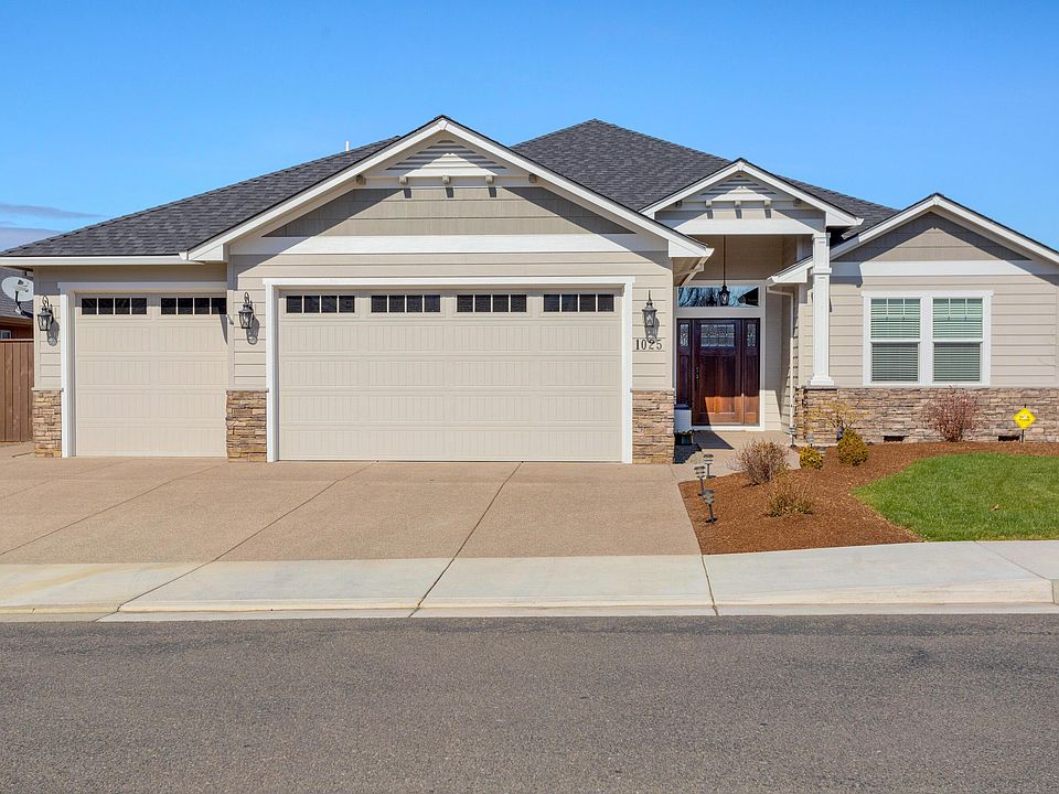 Beautiful custom 4 bedroom, 2 bath home built by Preferred Homes, LLC in 2018. Wonderful 2198 square foot single level floor plan includes a 10' ceiling with double coffer in the living & dining rooms. The kitchen is spacious and includes Bosch stainless appliance package, custom cabinetry and granite slab counters with beautiful tile backsplash. The master suite features a coffer ceiling and includes a gorgeous tile double head shower plus a relaxing tile surround soaking tub. This amazing home is loaded with top quality amenities including granite countertops, tile and engineered wood flooring, upgraded trim package, gas fireplace and so much more! Other features include a 3-car attached garage and large covered patio to enjoy the beautifully landscaped backyard area. Situated on a .21 acre lot in the Eagle Point Golf Community.