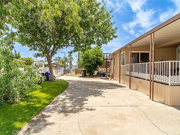 Affordable and well maintained 3 bedroom,2 bath manufactured home with a bonus office room and full bathroom! This home features laminate floors throughout, a spacious open concept floor-plan, a large driveway with plenty of parking, very unique corner space for more than 5 cars inside and another 5 right outside, with 3 separate driveways and fully fenced for privacy. This is one of the few parks that has very low restrictions, very stable family oriented and clean park. This is the perfect starter home for growing families and people who need a work space at home. Conveniently located between the 10 & 210 FWY, close to schools and grocery stores, 5 miles from the Renaissance Marketplace, and a short drive from Victoria Gardens and Ontario Mills. LOW monthly space rent, is move-in ready and in a community that offers a pool and a kids playground!