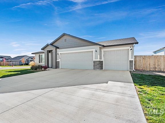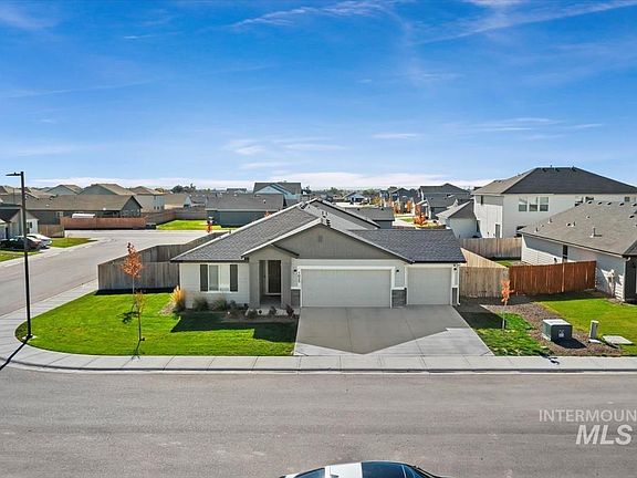 Welcome to this stunning 4-bedroom, 2-bath home perfectly situated on a corner lot near a cul-de-sac. Featuring vaulted ceilings and an open-concept floor plan, this home offers both comfort and style. The kitchen boasts a beautifully accented upgraded wooden countertop island, upgraded light fixtures throughout, upgraded kitchen pulls and plenty of space for entertaining. The primary suite includes a large walk-in closet with built-in shelving, and the ensuite bathroom offers dual sinks and a spacious vanity. Enjoy the outdoors in your fully fenced backyard, perfect for gatherings, pets, or simply relaxing in privacy. Additional features include a three-car garage and breathtaking mountain views—all while being tucked away from highway noise. Conveniently located within city limits, this home is just a quick 15-minute drive to MHAFB, close to shopping, and only 10 minutes from I-84. Don’t miss your chance to call this gorgeous property home!