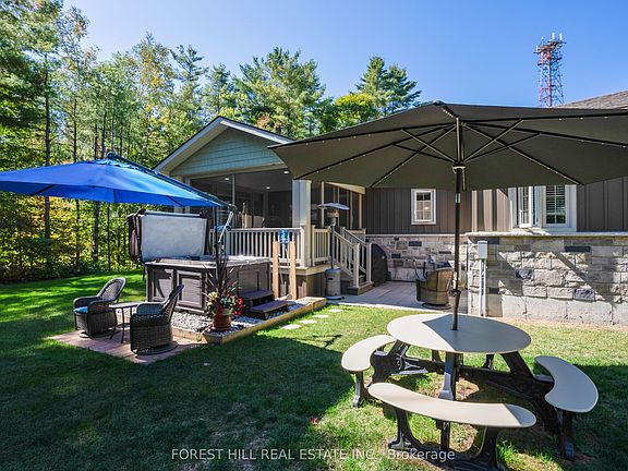 Beautifully maintained home set back from the road, perfect for outdoor enthusiasts seeking peace and privacy. A paved 4,200 sq. ft. driveway offers excellent curb appeal and ample parking, easily accommodating multiple vehicles or RVs. Enjoy a newly built screened-in porch overlooking the expansive yard, cleared yet bordered by trees for the ideal blend of open space and natural views. Inside, the bright and spacious kitchen showcases a large island with quartz countertops and direct garage entry for convenience. The Lower Level provides separate living accommodations, complete with its own entrance from the garage, 2 large bedrooms, family room, a full bathroom, and a kitchen area ideal for extended family or guests. The basement also offers generous storage space and includes a secure safe room. An oversized heated double car garage (with drains for car washing etc.and hot and cold taps) extends to 2 additional tandem garages fully insulated and heated, currently used as a workshop, games room , gym and golf simulator area. A true multi purpose man cave. Outdoors, the property is designed for relaxation and fun with a hot tub, outdoor fire area, golf practice area , and horseshoe pits, making it a year-round retreat. A wired-in Generac system provides peace of mind. Located just off Hwy 11, within 10 minutes of Gravenhurst and 15 minutes of Orillia. Sparrow Lake and Kahshe Lake are at your doorstep, offering endless recreational opportunities. A versatile and thoughtfully designed home that blends character, functionality, and lifestyle in one exceptional package.