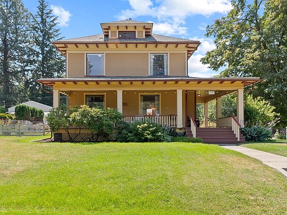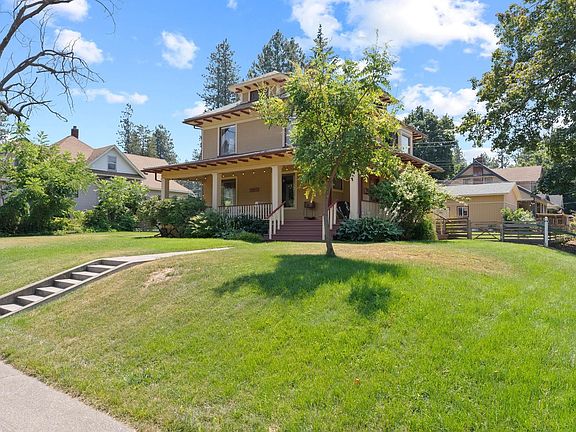 Welcome to this historic home located in the Cliff / Cannon District! Featuring an updated kitchen with new quartz countertops, appliances, bay windows, LVP flooring throughout, and a gas fireplace. Enjoy the fabulous walk-around front porch. The second level offers 3 bedrooms, including a primary bedroom en suite. While modernized, the home retains its historic charm with original woodwork and boxed beam ceiling. The fully finished 3rd level attic can be used as a 4th bedroom or home office. The basement includes a 5th bedroom/workout room, full-height storage, and laundry space. Situated on a large corner lot with a fenced backyard, detached 2-car garage, RV parking, sprinkler system, and a raised bed kitchen garden. Updates include New furnace w/ halo purifier, gutters, Electric panel, outlets grounded, recessed lighting, attic & basement gym remodel, restored original wood floors, gas fire, full entryway remodel! Just blocks from Groceries, restaurants and Rocket bakery!
