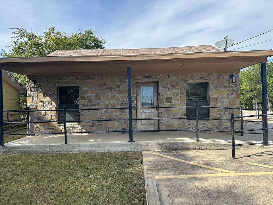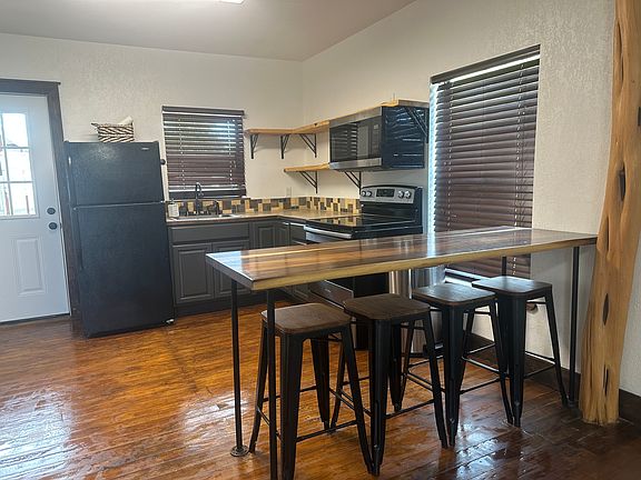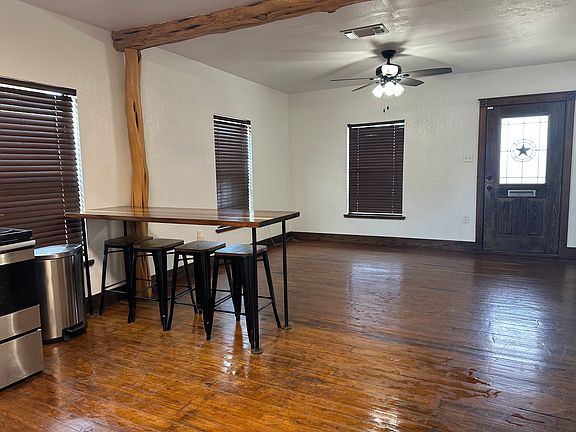 Beautifully redone 2 bedroom 1 bath home with a space for an office. Covered front and back porches. New privacy fence being installed now. Includes a washer/dryer, fridge, microwave and oven. One covered parking space available with home the other spaces will be rented out to other patrons. Water/Sanitation, Pest Control, Lawn Maintenance all are included in the rent. There is one available storage unit available for an additional fee. One small (less than 40 lbs) dog is allowed with a non refundable pet deposit.