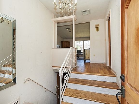 Beautiful brickwork marks the driveway and entrance to this spacious split level home which awaits your personal touch. Enter through the spacious foyer into the huge living room with stone fireplace, cathedral ceiling & picture windows overlooking the backyard. A sunny dining room offers room to entertain and leads to a 3 season porch with flagstone flooring and access to the yard. The kitchen is ready for an upgrade and has great space to design something to suit your tastes. A mudroom with a counter, sink and access to a side entrance is just off of the kitchen. You will be impressed by the spacious primary suite with full bath, two additional bedrooms and the large cedar closet in the hallway. The basement is a blank slate, ready for your imagination. The large family room has a fireplace. Also in the basement is a large room to create living space with laundry, exterior access and a 1/2 bath. A huge 2 car garage completes this home!