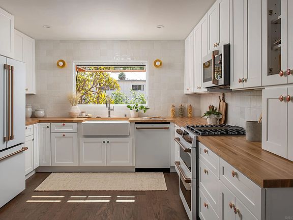 Vintage PB meets modern PB. Are you tired of seeing the same style in every newly-remodeled home? Well, this is the one for you! Inspired by the original 1940s Pacific Beach bungalow, this home blends classic coastal charm with contemporary touches and a completely reimagined floor plan designed for both entertaining and everyday living. The primary ensuite features a private deck and a spacious bathroom with a dual vanity sink from Pottery Barn, a sizable closet and terrazzo tiles. The open living space boasts loads of natural light with two skylights and French doors leading out to the back deck. The kitchen has pops of color, retro-inspired fixtures and a built-in banquette. The back deck is the perfect area to entertain guests with plenty of room for outdoor dining. The large five-foot pop-out window from the kitchen to the backyard features a surfboard bar top, perfect for passing beverages out to your guests and creating classic California indoor/outdoor vibes. The all new roof, landscaping, cabinets, countertops, appliances, and fixtures are just a handful of additional bonuses this property has to offer. This place is ready for you to call it home for the holidays!