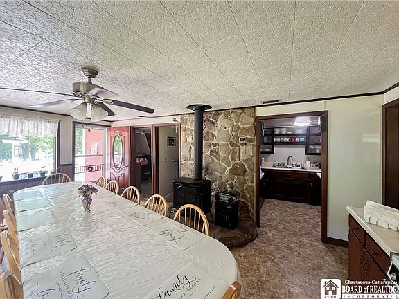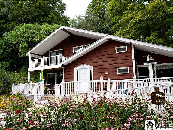 Tucked away at the end of a long private driveway, this charming home offers a whimsical retreat on 15.9 secluded acres! A newer concrete walkway leads you to a Trex deck entry and into a cozy living room with a woodburning fireplace. The first floor features a bedroom, spacious kitchen with an impressive butler’s pantry, a library, first-floor laundry, and more. Upstairs, you’ll find additional bedrooms, including a primary suite with a private balcony and full bath—perfect for soaking in the peaceful views. Two bedrooms feature cedar closets for added charm and function. The basement includes a high-efficiency furnace, Generac generator system, and glass block windows. Outside, enjoy a small barn with a stall and storage area, surrounded by lovely gardens and wooded trails. With free garbage pickup, low taxes, and total privacy—this property truly has it all!