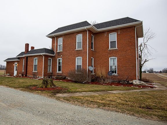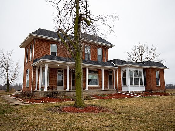 Lovely and rustic farmhouse with beautiful natural wood features and stain glass windows! The combination of brick and wood is a classic look that creates a warm and inviting place to call HOME.  The 8.5 ft natural wood doors and woodwork throughout the home shows the attention to detail in the craftsmanship of this farmhouse. The use of natural materials is important to the design, which create a sense of harmony and connection to nature.  This 4 bedroom, 2 bath farmhouse has a large living/dining room, family room, formal dining, and office. There is a 28x72 garage/barn that has concrete floors, electric, and water.  If you are wanting a piece of country living to relax and unwind, this is the home for you.