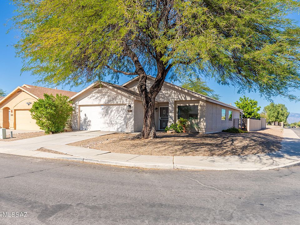 Welcome to your 3-bed,2-bath dream home in highly sought after Rita Ranch/ Vail School District! This charming 1,495 sq. ft. residence sits proudly on a spacious corner lot, offering both privacy and great curb appeal. The inside offers an open and functional floor plan perfect for modern living, vaulted ceilings, and a comfortable primary suite with walk-in closet and private bath for ultimate comfort. Updated wood-look laminate flooring adds warmth, while carpet in all 3 bedrooms is brand new!! Outdoors, enjoy a covered patio overlooking a low-maintenance yard with pavers--perfect for relaxing or entertaining. Don't miss your chance to own this move-in-ready gem in one of Tucson's most desirable neighborhoods!