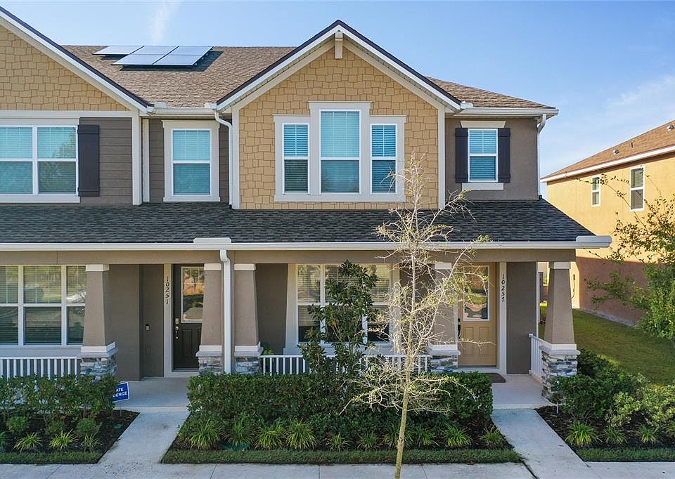Don’t miss this beautiful Randal Walk townhome with a front porch view of the pond. This gated community has only 107 townhomes clustered around the pond and the community pool located in center of the neighborhood. he 2-story home has the main living areas on the first floor and all of the bedrooms upstairs. When you enter the front door, you step into a perfectly proportioned open concept plan with a great room, dining area and kitchen. There is a triple-wide front window overlooking the porch and the pond. The kitchen features cabinets and quartz countertops, tile backsplash, work area recessed ceiling lights, breakfast bar with pendant lighting, stainless steel appliances and a closet pantry. The guest half bath was fully decorated in a charming way giving a more cozy feeling for this home. The garage is a two-car rear entry with a driveway large enough to easily park an additional two cars. Heading upstairs, the first thing that will catch your eye is the exterior balcony at the back of the home with a calming view providing many possibilities to relax and enjoy life! Conveniently located near shopping, dining, and entertainment, this townhome is a commuter's dream with easy access to major highways and top-rated schools. This home definitely offers a perfect blend of comfort and convenience. Great for your "home sweet home" and great for investors as it is already generating income on an annual rental! Schedule your showing today and make this home your next sweet home!
