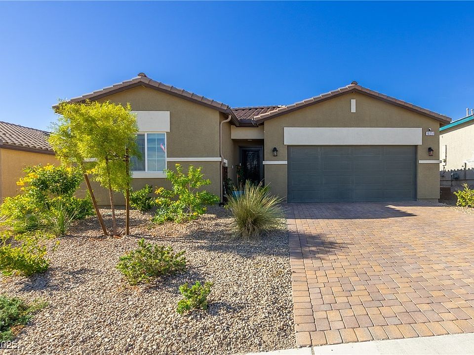 Welcome home to your peaceful retreat in Northwest Las Vegas! This beautiful single-story, 4-bedroom, 2-bath home is just three years old and perfectly designed with a thoughtful split floor plan—giving the primary bedroom its own private wing and massive closet. From the moment you walk through the custom glass-and-iron front door, you’ll feel the warmth and comfort of modern living with 9ft ceilings throughout. The open layout flows effortlessly into a finished backyard featuring an extended covered patio, a top-of-the-line hot tub, and incredible Strip views at the side—with no neighbors in front or behind. The two-car garage is finished with epoxy flooring. Enjoy the balance of privacy and convenience with quick access to the 215 freeway and the peace of mind that comes with the builder’s warranty still in place. This is one of those homes that simply feels special—the kind you don’t want to miss.