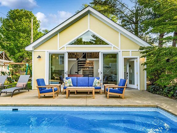 LOCATION, LOCATION, LOCATION - A four minute stroll to deeded Gowdy Shores private Deeded Beach Access, PLUS a pool PLUS a 600' pool house/guest cottage w/sliding doors opening to the pool w/kitchenette and full bath that sleeps four. Charming Arts and Crafts vintage Union Pier cottage ready for your immediate enjoyment-being sold 100 percent turn key inc bikes and beach toys. Original Mosaic tile and hardwood floors throughout. Large living room and formal dining. Modern updated kitchen and baths. Windows and light galore! Great porch for dining and hanging out, outdoor dining deck, fire pit, outdoor shower and even a kids play set with a climbing wall make this the perfect Harbor Country escape for fun and sun! Outstanding rental potential.
