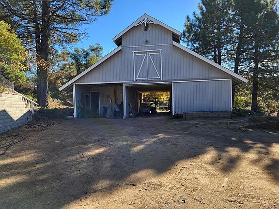 Fenced and gated Farmhouse retreat of 4 bedroom, 3 bath, 2786 sq ft custom home nestled on parklike 3.2 acres and is located in the quaint and charming town of Descanso. Room to roam for your horses and farm animals with a 4 stall (stick-built) barn and 3 pastures. Inviting living room is warmed by open beamed ceiling, carved wood mantle fireplace with Pellet stove insert, built in curio cabinet and drop- down ceiling fan. The spacious formal dining room includes tray ceiling, and a pass-thru to kitchen for ease of serving meals. Country kitchen features tile floor and countertops, informal dining area, double oven, dishwasher, trash compactor, gas cooktop and microwave. Walk-in pantry and laundry room with built in cabinets and ironing board are conveniently located to the kitchen. Serenity is the mood for the master bedroom suite that includes walk-in closet, arched window that frames the spa tub, separate shower and sitting room/office that has a private entrance door that leads to outside staircase. Two other bedrooms are located in the wing off the living room. Both include ceiling fans. Main bath located between these 2 bedrooms has a generous side tile shower with bench seat. Family room will be the center of entertaining, warmed by reclaimed brick hearth and efficient Pellet stove, built in entertainment center and ceiling fan too. Off the family room is a windy wood staircase that leads to an upstairs hideaway, perfect for guest room, playroom or? Other noteworthy amenities include: Hard surface floors throughout, 2 car attached garage, approximately 50 percent of the windows have newly installed Anderson windows. New Amana HVAC, water softener for entire house, 40 x 60 metal building with separate concrete driveway. Great place to store boat, RV, tractor or other vehicles. There are extensive solar panels that are completely paid for, 9 KW gas generator. 220 Volt, 20 AMP charging system for EV. Newer well drilled in 2017, 750 ft deep, originally tested at 7 GPM. Newer 5000 gallon holding tank, pressure tank and pump. Beautiful, treed grounds include oak, manzanita, a producing walnut and apple tree. Enjoy the old- fashioned veranda for morning coffee to afternoon lemonade and evening star gazing. This ranch is out, but not “far out.” A must see for natural beauty, warmth and value!