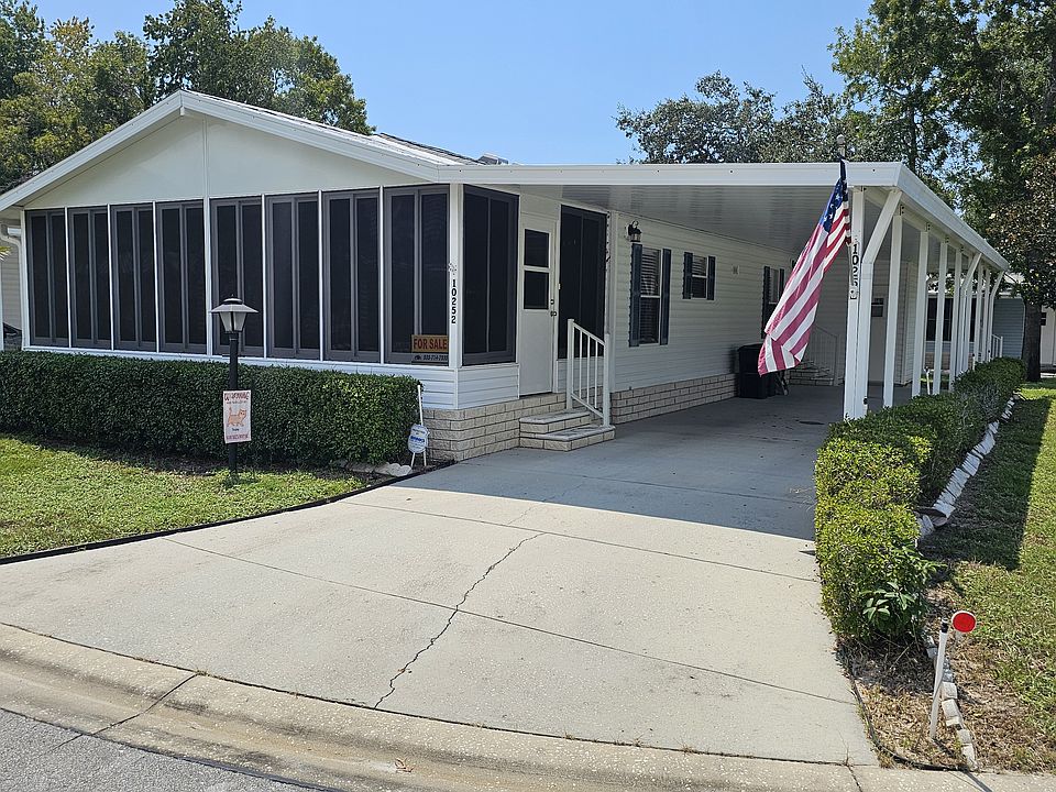 This Walden Woods home, in our active 55+ community has many updates and is a beautifully maintained home. Roof with solar tube 2019, water heater 2018, water softener 2022 and brand new AC 2024. All gutters have leaf guards installed. The primary bathroom has been remodeled with a stylish walk-in shower, new sinks and vanity and lots of storage. The kitchen has a full tile backsplash, new range hood and stainless appliances. You will enjoy the plantation shutters in the living room which afford privacy and shade from the Florida sun. The 2nd and 3rd bedrooms have large walk-in closets and the guest bath has new flooring, sink and vanity. You'll enjoy the large front lanai, sitting and watching the world go by in an open and airy space. This home is being offered at a very good price in our active 55+ community, so please call for an appointment now to view.