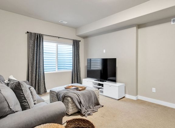 Location, location, location! This freshly painted 5 bedroom and 4 bathroom single family home is the perfect location because it is across the street from Golden Fields Elementary and walking distance to Mountain Creek Middle School, Bingham Creek Park, Harmons, Brookside Park and Oquirrh Lake. The main floor has an open kitchen, dining and living room space so you can cook, entertain and socialize at the same time. You will enjoy the upgraded kitchen with stainless steel appliances, 2 sinks, a gas stove, range, double oven, and island seating. The mud room boasts endless pantry space. The carpeted front room is perfect for an office, play room, music room or decorative entrance room. The top floor has a master bedroom with a large master bathroom including a huge tub, shower, and a walk in closet. There are three additional bedrooms upstairs at the end of the hallway next to the bathroom. The top floor also includes washer/dryer in the laundry room and a linen closet. There is ample storage upstairs and downstairs. The basement, or guest suite, has the 5th bedroom with a bathroom, large closet, living room and small kitchen. There is a cold storage room and an additional storage closet in the basement. The backyard is fenced and private with both grass and a cemented patio area for outdoor furniture. The grill is natural gas and included. The 2 car garage has built in storage and a long driveway that can fit 3 cars. There is no better place than Daybreak for community, outdoor activities, and amenities like pools, splash pads, parks and the lake. Come make this house your next home for your family.