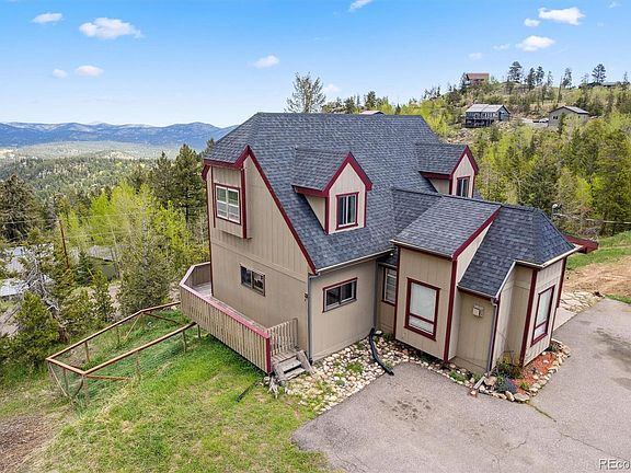 This lovely home has sweeping mountain views! Enjoy nature and wildlife in this secluded, quiet neighborhood of Hilldale Pines. This cozy home offers the perfect blend of comfort and serenity and is situated on 1 acre, just 30 minutes from the Denver suburbs. Outside you will find a wide driveway with multiple parking options and an oversized three car garage. The remodeled kitchen boasts beautiful cabinetry, block counters and smokey stainless steel appliances. There is a bedroom on the main level and was recently remodeled with a large walk-in closet. There's also a remodeled bathroom on the same level. There are two bedrooms and a bathroom located on the upper level. A non-conforming room is in the basement although most of the basement is unfinished and there's not a heat source. The seller has ordered new windows and they will be installed in late July. The seller will also be putting in a new leach field. Septic is designed for 3 bedrooms and suitable for 6 people. Internet - Centurylink, Trash Mountain View Waste and Electric is CORE. You won’t find a more affordable home with amazing views in Hilldale Pines.