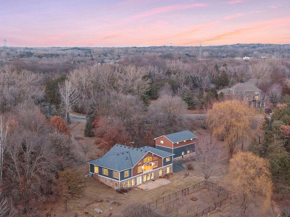 Discover the epitome of luxury living in this stunning home nestled on 3.5+ acres of partially wooded land, offering unparalleled privacy and breathtaking views. A sprawling southern exposure patio beckons relaxation, while inside, the living room impresses with its 16-foot vaulted ceiling, floor-to-ceiling windows framing nature's beauty, and a majestic stone fireplace. The spacious kitchen boasts modern amenities including a wine cabinet, china cabinet, huge pantry, and a recently purchased dishwasher. Retreat to the expansive primary suite with a generous walk-in closet and a sizable bathroom featuring a dual shower with separate whirlpool tub. Throughout the home, large rooms, tall ceilings, and abundant windows create an airy, open ambiance, complemented by wide hallways, in-floor heating, and a walk-out recreation room with a custom bar. Outside, a detached insulated shop with an upper bonus room awaits your creative endeavors. See supplements for a full list of details.