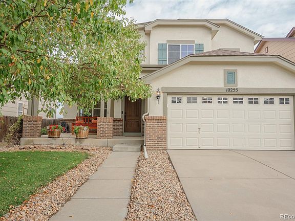 Beautiful 4-bedroom, 4-bath home in desirable Dunes Park backing to a serene retention pond with stunning mountain views. Open floorplan with main-level master suite featuring bamboo and natural stone floors. Updated kitchen with granite countertops, marble backsplash, and newer dishwasher. Finished basement includes a family room, full bath, and bedroom with walk-in closet—ideal for guests or multigenerational living. Enjoy outdoor living on the large backyard deck, covered front porch, and a garden with mature grapes and tomatoes. Two-car garage with extended bay for added utility. Recent updates include new exterior paint, AC, water heater, and windows. Neighborhood amenities include pool and park. Convenient location just 20 minutes from Downtown Denver with easy access to shopping, dining, and major routes.