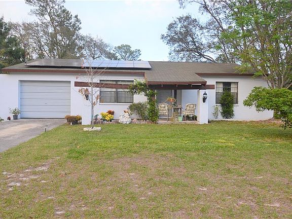 **SOLAR HOME** Here's your chance to "live on the cheap". Affordable home with even more affordable utility costs. Current tenant experiencing an annual monthly average of $60 for electricity costs thanks to the 7KW solar system and the NEW AC SYSTEM installed 10/2018. Floor plan features a large laundry/utility room and spacious bedrooms that will accommodate king size beds. The main living area has features ceramic tile flooring for ease of cleaning and maintenance. Spacious back yard offers a "relaxing reflection" area to sit and unwind. Super convenient location only 2 miles from the local hospital, 3.5 miles to popular restaurants, and 3.6 miles to WalMart Supercenter plus several other big box stores. Easy access to the Suncoast Parkway only 5 miles away offers quick, commuting to Tampa. Gulf of Mexico boating and beaching is a short 8 miles away.