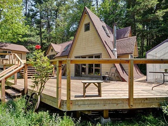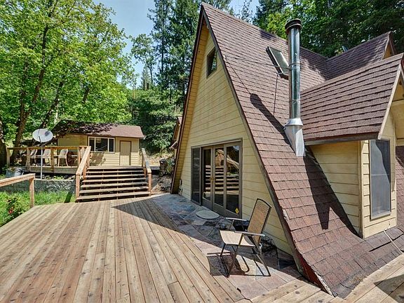 RARE riverfront estate on Little Applegate River! 33.44 acres, 2 custom built homes with river frontage and 3 building sites. See each listing that represents this complete package! This 2 bedroom 1 bath 972 sq ft darling A frame with master suite added comes with a wrap around deck that ends at rivers edge on 2.5 acres with a single car garage. Truly, an enchanted cabin in the forest! This can be your dream property retreat in the most private and beautiful area of the Applegate - Don't miss this rare Southern Oregon opportunity!