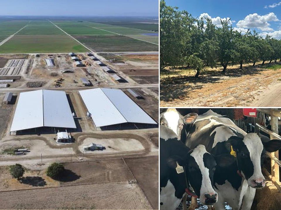 Located in the greater Caruthers area of Fresno County, California, the subject property consists of 2,483.88 acres comprised of a 191 acre fully automated diary facility, 625 acres of almonds, 70 acres of grape vines and1,335 acres of open land/row crops providing ample feed for a sustainable airy operation with numerous wells and solar.The 191 acre turnkey robotic dairy operation includes 24 Lely Astronaut A5robotic milking systems, Lely Juno automatic feed pushers, Lely Luna cowbrushes, and a Lely cow locator system.A total of 18 pumps and wells and 2 booster pumps provide irrigation water to the ranch and dairy facility. The almond orchards have a dual line drip irrigation system and the open ground is flood irrigated. The parcels are located in the Raisin City Water District, part of the McMullin Area GSA.Currently, there is no surface water delivery from the district.Contact agent for additional information.