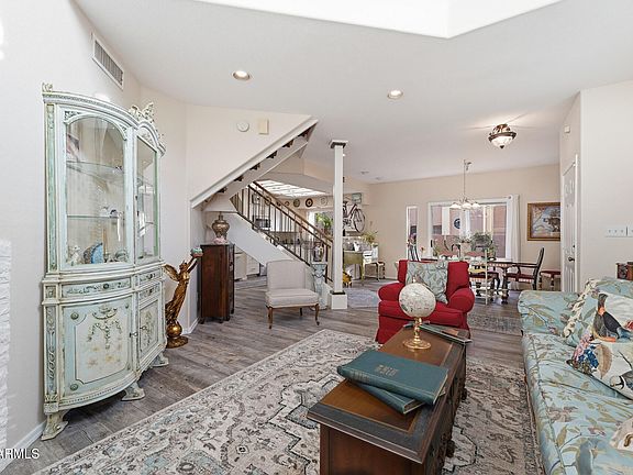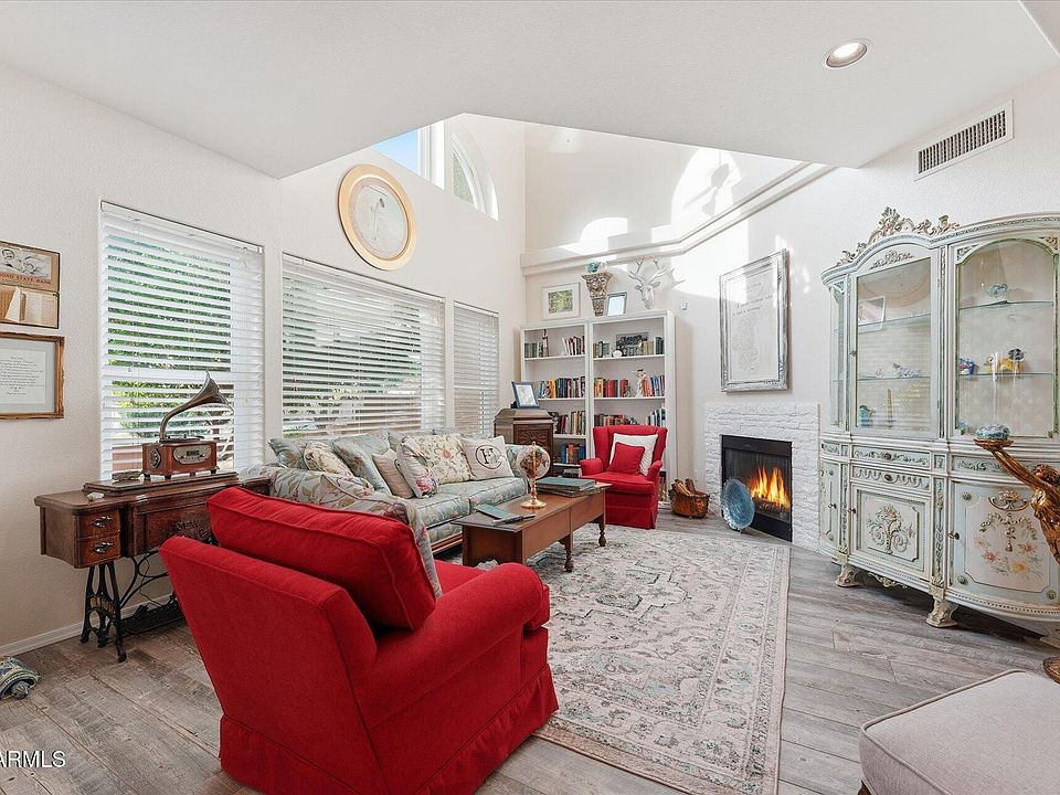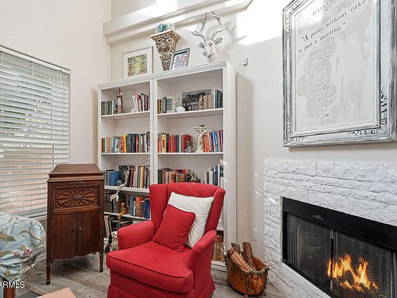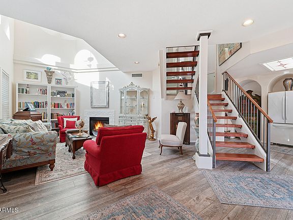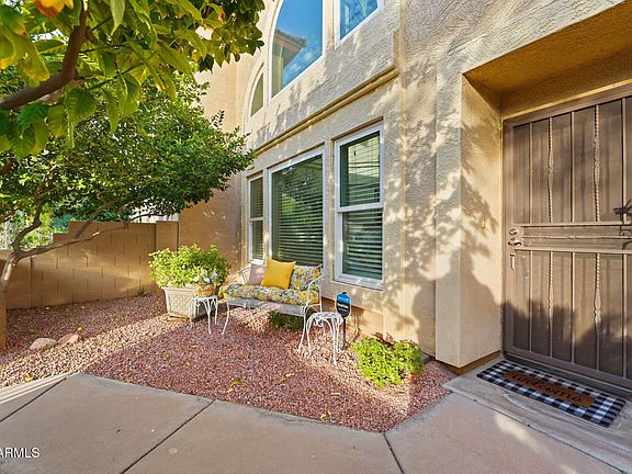 This charming, uniquely appointed townhome is in the wonderfully located Pointe Resort Tapatio Cliffs, close to restaurants, hiking, (North Mt Park) golf, and even vintage shops! Spray on your SPF, put on your hat, and enjoy the 3 heated pools and spas, BBQ grills, and sport courts. Featuring ample guest parking out front, the entry courtyard welcomes you inside, where you will find a cozy fireplace, gorgeous porcelain floors throughout, and an open, bright, updated floor plan. Guests will enjoy a rare, tucked away, private Powder room on the main floor. Bring your groceries in directly from your attached garage.While there is a formal dining room for entertaining, it could also be the perfect ''flex space'' leading outside to the patio through sliding doors. Upstairs is a generously sized primary suite with a balcony door that opens for fresh air, and an ensuite bath. The 2nd bedroom and hall bath are perfect for guests! There is even a loft space for a home office, crafts, or extra sleeping? The HOA fees are a dream ... no having to remember to pay separate bills for water, trash, sewer, exterior/roof, or Cox Contour Cable. It's all included in this resort-style fabulous Townhome!