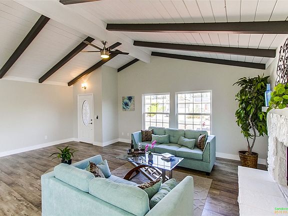 This elegantly renovated home sits on a quiet cul-de-sac, in one of the best neighborhoods in Mira Mesa. Don't be shy to blast the AC, as this home boasts free solar power!! You are greeted by a stunning family room with high, open beam ceilings. The floor plan is open and spacious and is filled with natural light. Offering a chef's kitchen that opens to the backyard, complete with a new patio cover and sparking pool! With 3 ample bedrooms, 2 full baths, finished 2 car garage, all new beautiful flooring, too many amenities to list!