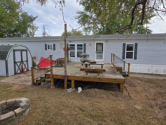 Main level living and affordability unite in this 3 bedroom 2 bath home outside Muscatine. This home has an open concept living, dining and kitchen. Primary bedroom and bathroom are on one end, with 2 bedrooms and a bath on the other for privacy. Enjoy the spacious front deck and larger lot with a shed. Home is on leased land and is being sold where-is. Cash Only. Contact Curry's for community guidelines and lot rent.