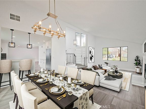 Tucked at the end of a quiet cul-de-sac sits this beautifully remodeled residence. Highlighted with vaulted ceilings, open living spaces and elegantly styled contemporary finishes. As enter, you are immediately captivated by the grand two-story foyer with wrap around staircase and the expansive living room anchored by its central fireplace. Separate formal dining room and wonderful cooks kitchen with breakfast bar, loads of custom cabinetry, farm sink, quartz counters and designer backsplash which opens to the great room styled family/media room with plenty of space for all your extra entertaining needs. Outfitted with three bedrooms that include the elegant primary suite with walk-in closet and private updated bath with dual sink vanity along with its oversized seamless glass shower. Step out and relax in the private rear yard with multiple lounging venues, including covered patio, open patio space and let's not forget the sparkling swimmers sized pool! Located in a wonderful, quiet neighborhood and a home you will surely not want to miss!