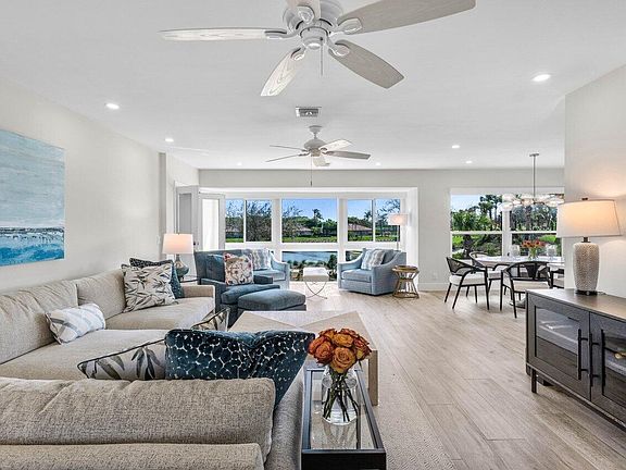 Panoramic, sweeping lake & golf views from every window of this condo! Beautifully remodeled second-floor corner condo, offering privacy & modern elegance. This spacious 2-bedroom, 2-bath home features gorgeous tile plank flooring throughout, adding warmth and durability. The open-concept kitchen boasts sleek cabinetry, high-end finishes, and ample counter space, perfect for entertaining. Enjoy expansive lake and golf course views from 3 sides of this condo, creating the perfect retreat. The front bedroom window has been enlarged, giving beautiful, long range golf views Impact glass windows. Quail Ridge is a mandatory membership, private club community offering golf, tennis, pickleball, spa & fitness and a fabulous clubhouse with dining and social activities.