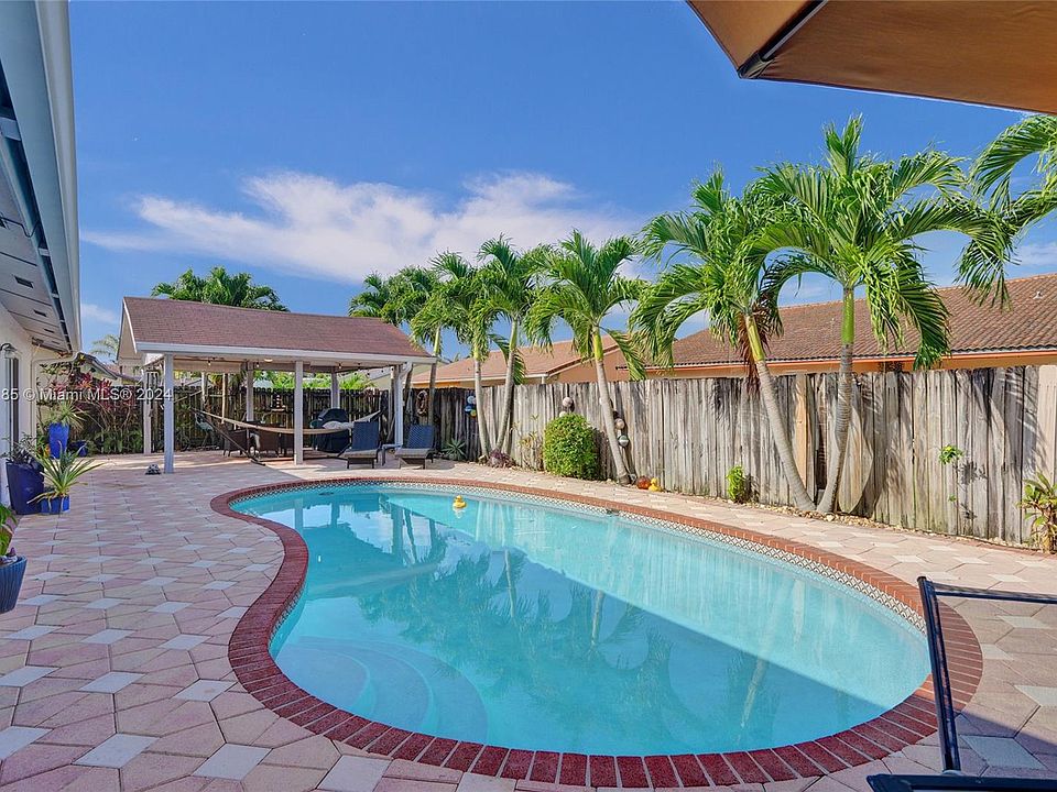 Welcome to your dream home in the sought after neighborhood of Sugarwood. This stunning 4-bedroom, 2-bathroom property offers a spacious and luxurious living experience. Nestled on a quiet cul-de-sac, it boasts a sprawling backyard with a sparkling pool and lush landscaping. Inside, you'll find an open floor plan with soaring ceilings, oversized windows, and high-end finishes throughout. The gourmet kitchen is a chef's delight, featuring Brazilian quartzite countertops and blacksplash, stainless steel appliances, and a breakfast bar. The spacious master suite offers a private entrance towards the pool, a large walk-in closet, and an updated master bathroom. Don't miss out on this exceptional opportunity to own a slice of paradise in the heart of Miami.