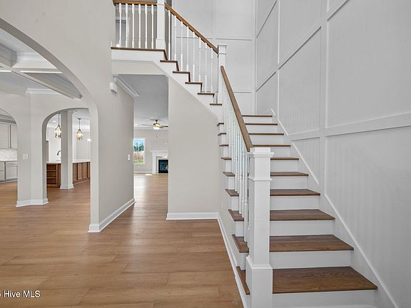 Every detail in this home has been curated for sophistication and convenience: enjoy the charm of exposed beams in the owner's suite, detailed crown molding, and dazzling quartz countertops complemented by a level 5 tile backsplash. Experience enhanced ambiance with under-cabinet and LED recessed lighting. The home also features cutting-edge technology, including a touch screen panel prepped for wireless security, a Z-Wave lock, a T6 Z-Wave thermostat for climate control, a Skybell video doorbell for added security, and a full year of complimentary automation service through Alarm.com.