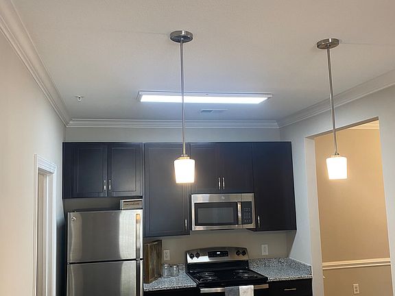 Brand new construction. This apartment has a sunroom which adds more square footage to the living room. Great view of the pool! Granite countertops, new stainless steel appliances, luxury vinyl plank flooring, and ceramic tile in shower. The amenities include a salt-water swimming pool with sundeck, 24 hour fitness center, playground, grilling station and an off leash pet park. 24 hour on call maintenance. Right across the street from Lake Louise!