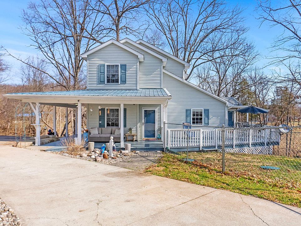 **Under Contract with immediate kick-out clause** Experience the best of lakefront living on Beaver Lake! This serene retreat sits on +/- 1 acre of wooded lakefront with stunning views. The home features 3 bedrooms and 3 full baths across 3 levels. The kitchen boasts hardwood floors, stainless steel appliances, granite countertops, and an island breakfast bar. The dining area offers lake views, while the cozy den with a cathedral ceiling and gas log fireplace is perfect for relaxing. The main level also includes a bedroom, full bath, and laundry room with built-in cabinetry, granite countertops, and a utility sink. Upstairs, the loft provides a sunny flex space, along with a primary suite featuring a walk-in closet and ensuite bath with a double vanity sink. The walkout basement adds a family room, third bedroom, full bath, and more storage. Outside enjoy the wraparound deck, covered porch, and private dock with boat lift. The property features an oversized 36' x 24' 2-car garage with work benches, as well as 3 additional garden sheds. Beaver lake is renown for fishing and kayaking and conveniently located between Louisville & Lexington in bourbon country!