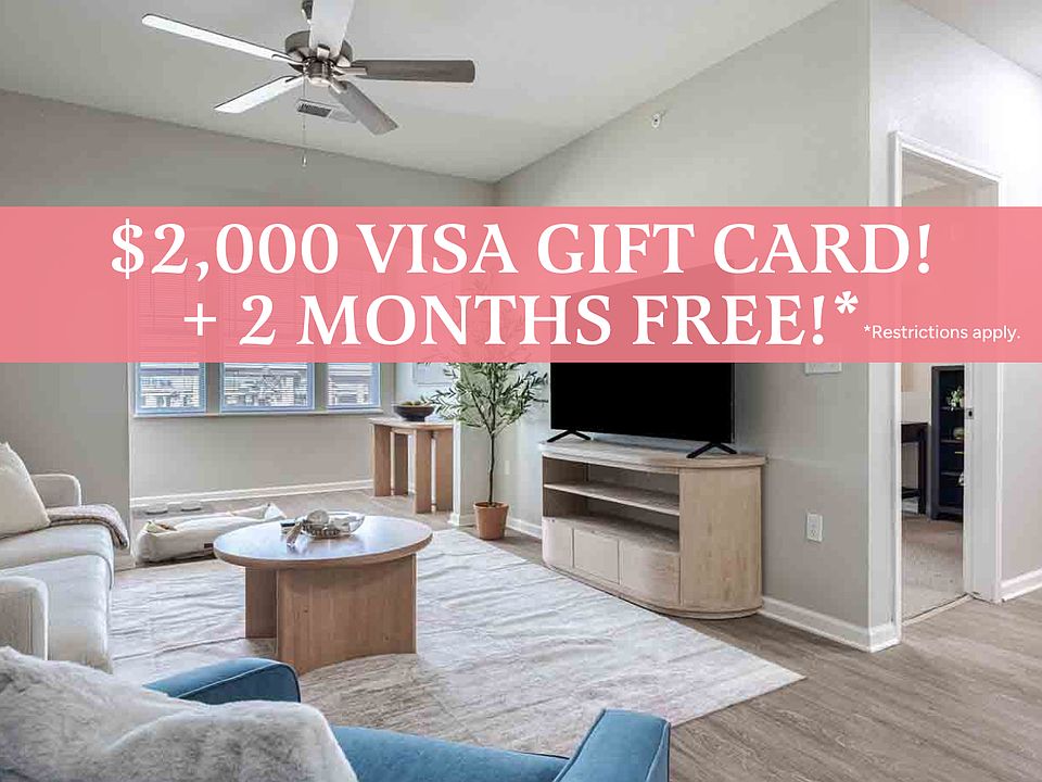 - Special offer! LOOK & LEASE SPECIAL: Tour & apply same day to receive $2,000 Visa Gift Card and 2 MONTHS FREE rent! Must move-in on or before 12/15/25. Lease must be signed within 72 hours after application approval. Gift card awarded at move-in.Expires December 15, 2025