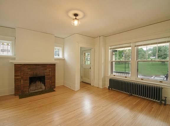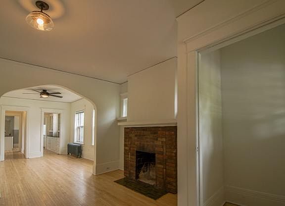 Beautifully renovated 3BR/1BA apartment across from Portland Park. $1600/mo includes heat, water, garbage, lawn care, and snow removal. Virtual Tour Available! Apt B is the middle floor of a historic 1901 Duluth property. It has a large porch opening onto Portland Park. The apartment was thoroughly remodeled and restored to feature modern aesthetics while honoring the building's Old Duluth charm. Gorgeous hardwood floors have been refinished in all rooms. The kitchen and bathroom have been thoroughly remodeled, and the kitchen features a breakfast nook in addition to the apartment's dining room. A butler's pantry offers stunning vintage built-in cupboards. Custom Richlite countertops throughout. The living room is large and pleasant with plenty of light from the park view. There's also a large lawn for sunny days. Coin laundry, basement storage and garage parking. Close to St. Luke's, Essentia, and Co-op. DTA Bus #13 stops right in front. $1600 security deposit. Attentive landlords. No pets or smoking. $50 application fee. Owner pays heat, water, garbage, lawn care, and snow removal. Tenant pays electric, cable, and internet. No pets, no smoking. 3 off-street parking spaces including 1 garage stall. Storage in basement.