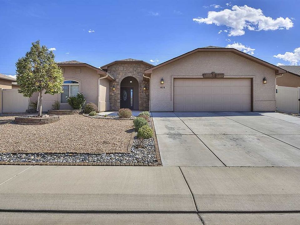 Meticulously Xeriscaped 4-bedroom, 2-bathroom Fruita rancher provides low-maintenance living at its best! It has a great floor plan, newer carpet, new custom blinds, and vaulted ceilings in the front bedroom, which makes a nice office. The gas log fireplace in the living room will keep you and your guests toasty. There are distinctive archways both inside and outside the home. The gorgeous kitchen has stainless steel appliances, an extra-long breakfast counter, and a separate built-in desk area. The large 3-car tandem garage has an epoxy floor. The master bedroom ensuite boasts split sinks, lovely tiling, and a linen closet. A park is only steps away from your front door. You will enjoy dining outside on your desirable East-facing covered back patio. Gardeners will appreciate the irrigation water and existing garden boxes. The completely fenced in back yard also has new double gates.