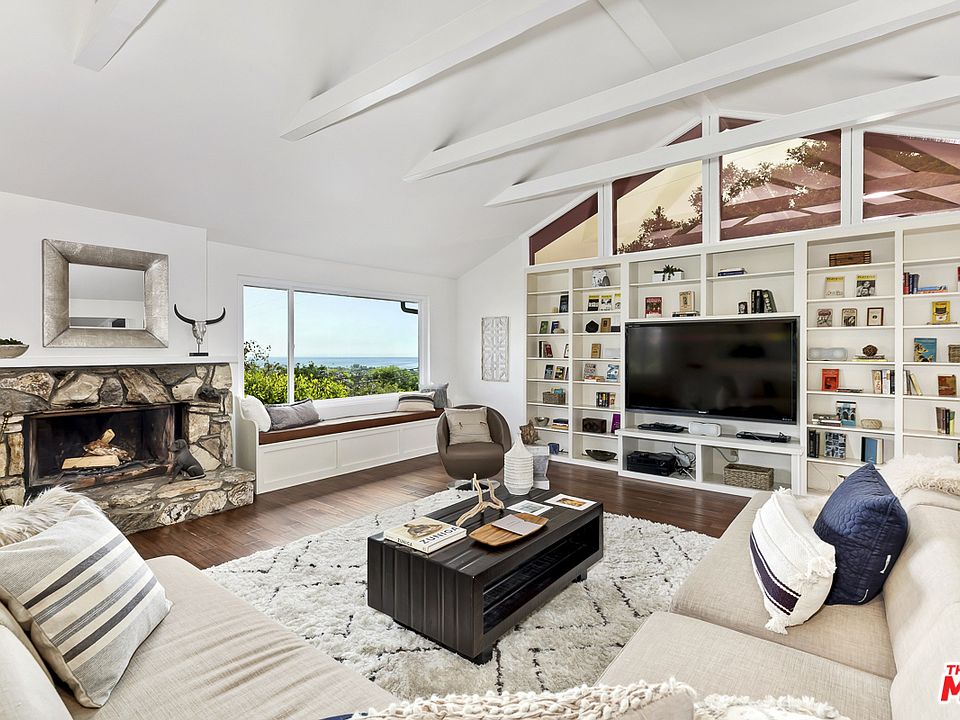 This updated mid-century modern multi-level home boasts stunning mountain & ocean views & sits on a 24,635 sq ft hilltop lot. The main living room is the perfect spot to relax & take in the ocean views from the large windows. The open kitchen & dining area is one of the most impressive spaces & offers sleek white cabinetry, granite countertops, & premium stainless steel appliances. A set of sliding glass doors open out to the main deck which features a built-in barbecue. The roomy master is ensuite & has a spacious walk-in closet & high ceilings. The master bath includes dual sink vanities, a deep soaking tub, & a frameless glass shower. All of the bedrooms are of great proportion & offer plenty of space. The hillside backyard has an abundance of inviting outdoor spaces. The attached two-car garage completes the package & provides plenty of space for you to store your toys. Secure your own piece of paradise today! The Gardener is included in the lease agreement.
