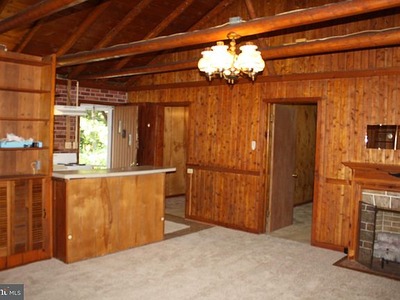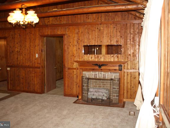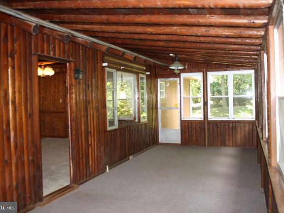 Rambler log siding with circle driveway. 3 br 1.5 bath. Livingroom, Dining Room and sun porch. Gas fireplace in Livingroom. Hard wood floors and carpet. Loft and open beam ceiling. Has basement that you access from outside not inside with laundry area. Property is being sold as is.