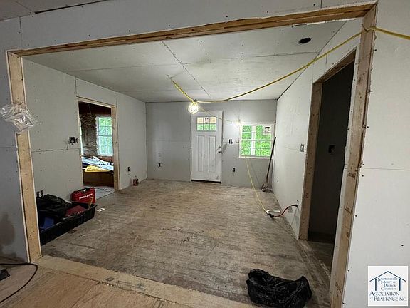 Great opportunity! Re-Constructed home, needs completion! New roof, blown insulation, electrical and 200 amp panel box, plumbing, addition with permit, floor joists, sub-flooring, roof joists/beams, LG washer and dryer, circular gravel driveway, great rural setting on dead end street, and more. SOLD AS-IS. Fireplace in living room - only room not updated - wood plank ceiling, hardwood flooring, very cozy! Some new double pane windows. RV hook up. Extra septic. Additional cottage, one room with shower/toilet/kitchenette, mini split, 100 amp breaker box. Old tobacco barn, 2 story. Beautiful views! Information per seller and county records.