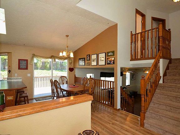 Fabulous four-level in Fox Ridge! Situated on a large corner lot with fenced yard and beautiful view. Open main floor design with lots of daylight. Large Kitchen with "new" stainless steel range, pantry, skylight & eating bar. Adjoining Dining space with patio door to deck and patio. Huge daylight Family Room open to the Kitchen. Master Suite with walk-in closet, dbl sinks, shower, & garden tub. Hardsurface main level floors, new carpet upstairs, exterior freshly painted and Central A/C installed in 2015.