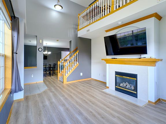 Cozy fireplaceGarage storage racksBright open floor planConvenient laundry areaCorner-unit townhomeVersatile loftFresh paint