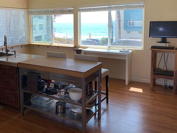Rare Ocean View 2BR Across from the Beach!! This rarely available 2-bedroom, 1-bathroom single-story ocean view unit is located directly across the street from the beach in Oceanside. With over 1,500 square feet, the expansive open floor plan features hardwood flooring, abundant natural light, and ocean views from nearly every room. The outdoor BBQ pit, and generous storage space add to the charm and functionality of this unique home. A private garage with a covered workbench area makes beach living convenient by eliminating the parking hassle. The property also includes an on-site laundry facility, and water, trash, and recycling are paid by the landlord. Small, quiet pets may be considered with an additional deposit and monthly pet rent. This professionally managed unit is available now, subject to a credit check ($60 per applicant), security deposit, and a one-year lease. No smoking permitted. Unit is available to move in now Owner pays for water and trash. One year lease. Pets go through an approval process.
