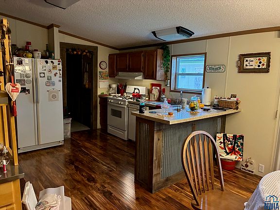 Immaculate 3 bedroom, 2 bath home with lots of updates including barn wood trim and doors in laundry room, new counter tops, lots of new flooring, real wood fireplace, tiled walk-in shower and more! You must see this home to appreciate all the updates. Monthly lot fee is $532.88