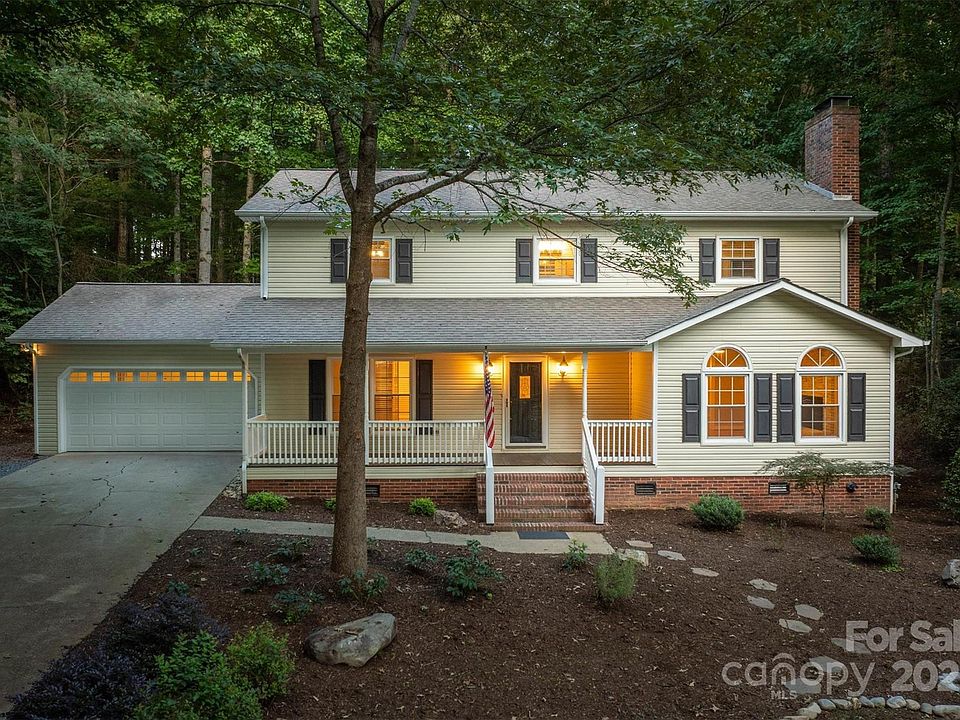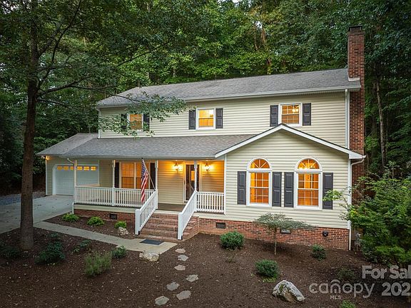The exterior boasts a charming front porch, perfect for morning coffee or evening relaxation, while the backyard offers a serene retreat surrounded by lush greenery that offers great privacy.