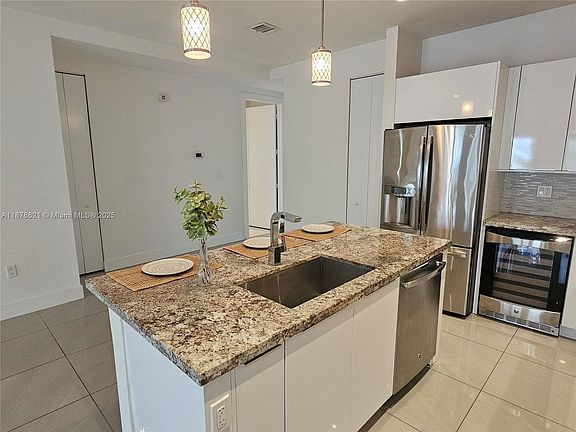 Located in Landmark at Doral, this updated 3-bed, 2-bath smart home features stainless steel appliances, quartz countertops, and custom cabinetry in the open kitchen. The master suite offers a spacious walk-in closet. Enjoy impact-resistant windows, a tankless water heater, and energy-efficient features. This one-story unit includes elegant tile flooring, carpeted bedrooms, in-unit laundry, and reserved parking with guest spots. The community boasts resort-style amenities like a pool, fitness center, tennis courts, basketball court, splash pad, and event spaces. Walking distance to schools, parks, dining, shopping, and entertainment, offering the best in convenience and lifestyle.
