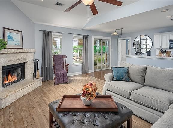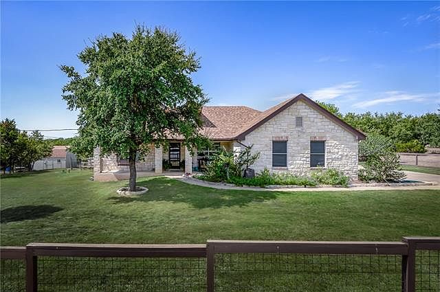 Light & bright single story Texas ranch style home on private & quiet double lot, level, fully fenced/gated property. Limestone exterior, wood burning fireplace, concrete flooring, vinyl plank wood-look flooring. Custom paint, mature landscaping & pruned Texas oaks & fig tree. Separate shop/flex space w/air cond. & insulation, fenced garden space ready to plant, rain water collect. system, new roof & new water heater ~ 2017. Chicken coup, covered portch & fire pit. Welcome to the Texas Hill Country.