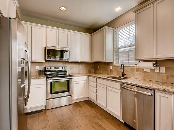 This Townhome is perfectly sized and incredibly situated with 2 beds, 3 baths, a 2 car garage, and 1,216 finished SF in the heart of Ridgegate Central Village in Lone Tree. The spacious kitchen features granite slab counters, 42" white cabinets, stainless steel apps., and eat-in space. Upstairs you'll find the master suite with a full ensuite bath, the laundry room and the secondary bed, also with a full ensuite bath. Relax by the warm gas fireplace in the well-appointed family room, or enjoy the large private patio between the home and the detached garage. Take a short walk for a cup of coffee, get your nails done, or grab dinner and take in a show at the Lone Tree Arts Center - all just a few blocks away. This great home is also close to the Lone Tree Rec. Center, Prairie Sky Park, Charles Schwab's Lone Tree Campus, Skybridge Medical Center, Cabela's, Bluffs Regional Park, and countless restaurants and shopping establishments. Come see it today!