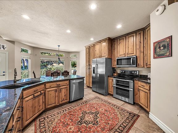Stunning 6-Bedroom, 3.5-Bath Home with Mountain Views in Prestigious Highland Neighborhood! Nestled in a quiet, double-ended cul-de-sac, this meticulously maintained home offers the perfect blend of luxury and comfort in one of Highland's most sought-after neighborhoods. Situated on a private half-acre wooded lot with a treed slope, the property features a large play yard at the top and is fully fenced for privacy and security. Enjoy convenient RV parking and an oversized 3-car garage for all your storage and vehicle needs. Step inside to find a spacious, open-concept design with vaulted ceilings and an abundance of natural light. The formal living room and study provide ample space for relaxation and work. The gourmet kitchen features a walk-in pantry, perfect for culinary enthusiasts, while the family room provides a cozy place to gather. The main level also includes a large laundry room also used as a craft room, and plenty of storage cabinets throughout, offering both functionality and convenience. The luxurious primary suite is a private retreat with its own en-suite bath and walk-in closet. Picturesque views of the wooded yard provide tranquility and privacy. Upstairs, the home continues to impress with a reading loft, complete with built-in bookshelves, and three generously sized bedrooms. A full bathroom with a laundry chute adds extra convenience. Open & airy throughout this level provide an airy, spacious feel, while the mountain views are simply breathtaking. The fully finished basement boasts a large family room with a kitchenette, two additional bedrooms, and a full bathroom. Additionally, an office, shelved storage room, and fitness room offer versatility for any lifestyle. For added privacy and convenience, the basement includes a separate entrance from the third-car garage bay, and outside entrance. This well-cared-for home is within walking distance to the renowned Alpine Golf Course and the scenic Highland Glen Park and Pond, making it the perfect spot for outdoor enthusiasts and nature lovers. Whether you're looking to relax in your private sanctuary or explore the surrounding natural beauty, this home has it all. Don't miss the opportunity to make this beautiful Highland home yours! Included: Play set in yard, 3 drinking fountains, tv's in fitness room, laundry/craft room, kitchen bar stools, garage fridge, garage shelves & bike hooks, in-home humidifier system, water softener and radon mitigation system.